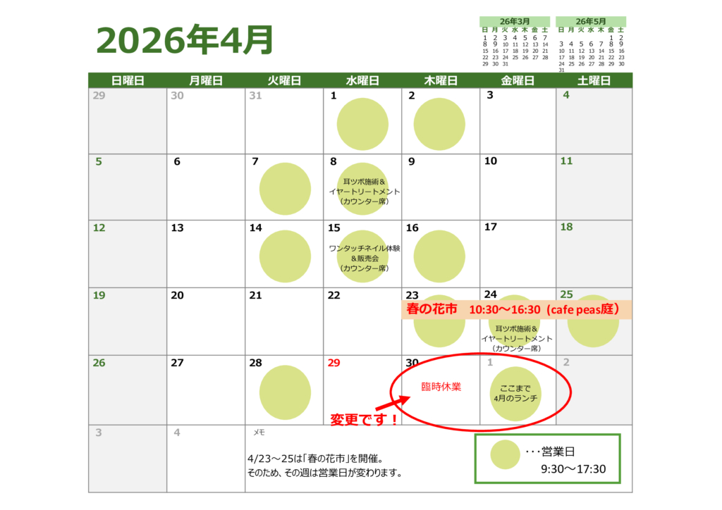 【変更】4月の営業日のお知らせ
